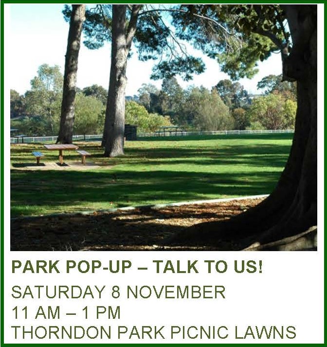 • Attend our on-site Park Pop-Up on Saturday 8 November from 11 am – 1 pm on the picnic lawns near the main car park