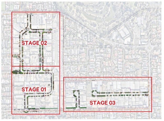 A staging plan with 3 distinct stages has been developed for each precinct to ensure that implementation has minimal impact to road users, business owners and residents.