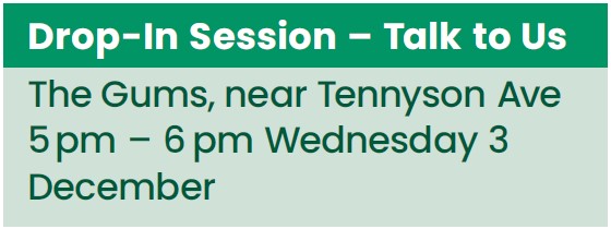 - Attend a Drop-In Session near Tennyson Ave: 5pm – 6pm, Wednesday 3 December 2025.