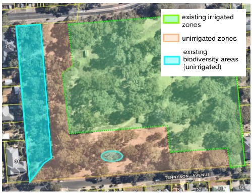 Currently, some sections of the reserve are irrigated, while others are not. During warmer months, the unirrigated zones can often become dry and dusty, leading to community concern about their appearance (Figure 2).